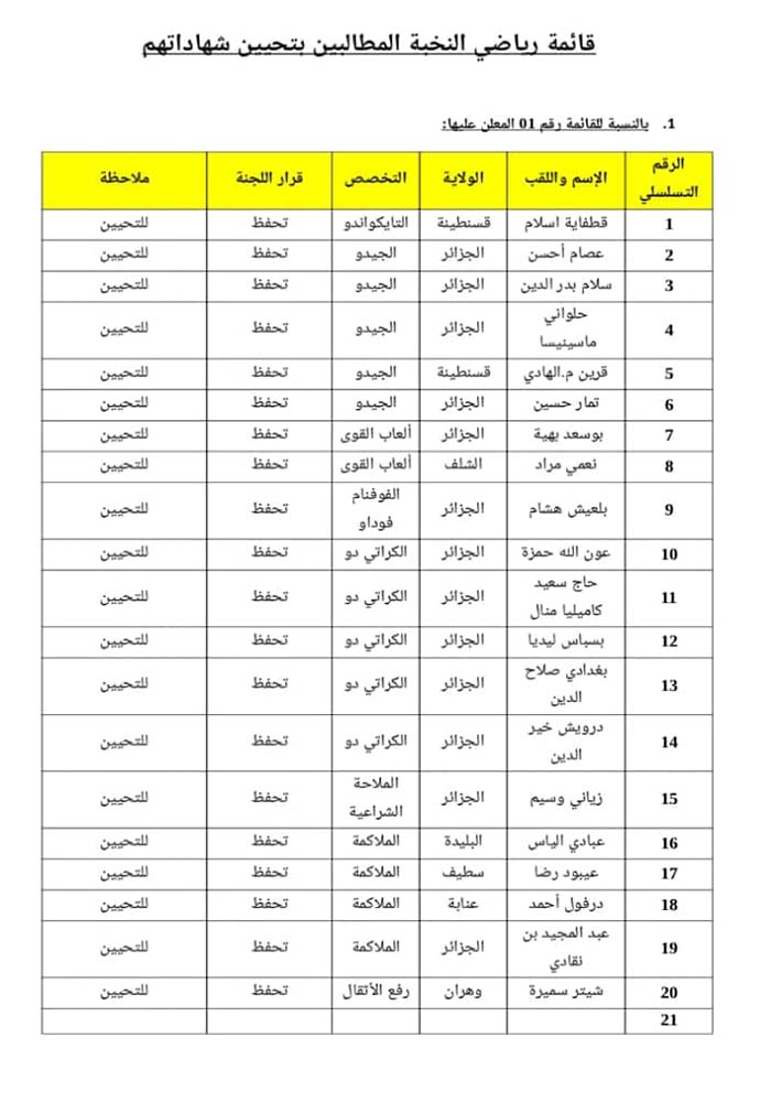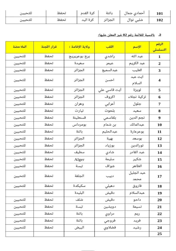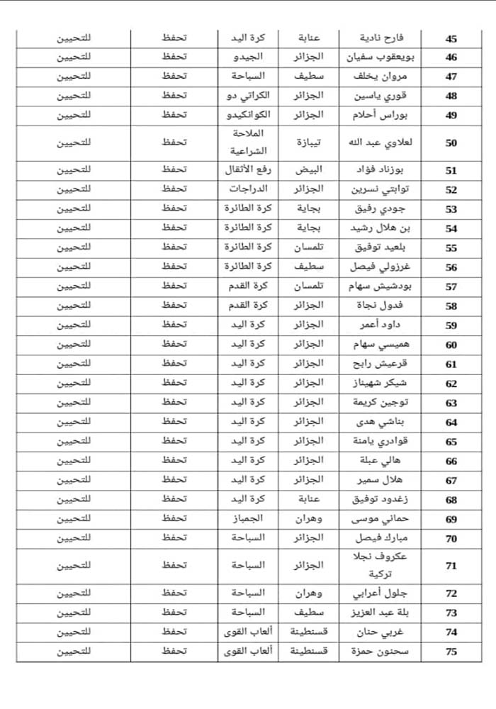 كما نطلب من المترشحين الواردة أسماؤهم في قائمة المعنيين بالتحيين سحب استمارة المعلومات المدرجة على المنصة الرقمية https://survey.mjs.gov.dz/ والمصادقة عليها من طرف اتحادياتهم وإيداعها لدى مصالح المديرية العامة للرياضة وهذا في أجل أقصاه 15يوم من تاريخ الإعلان.