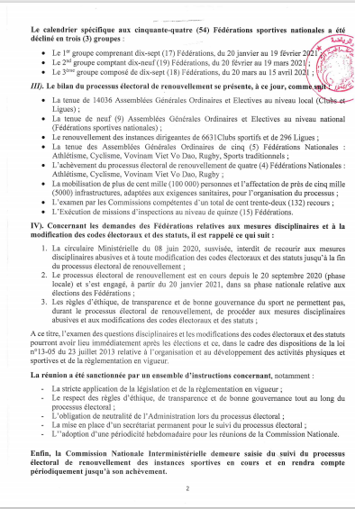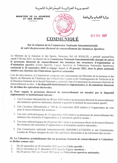 Interministérielle de suivi du processus électoral de renouvellement des Instances Sportives.admin9 février 2021Communiqués de presse Nombres de vues : 17